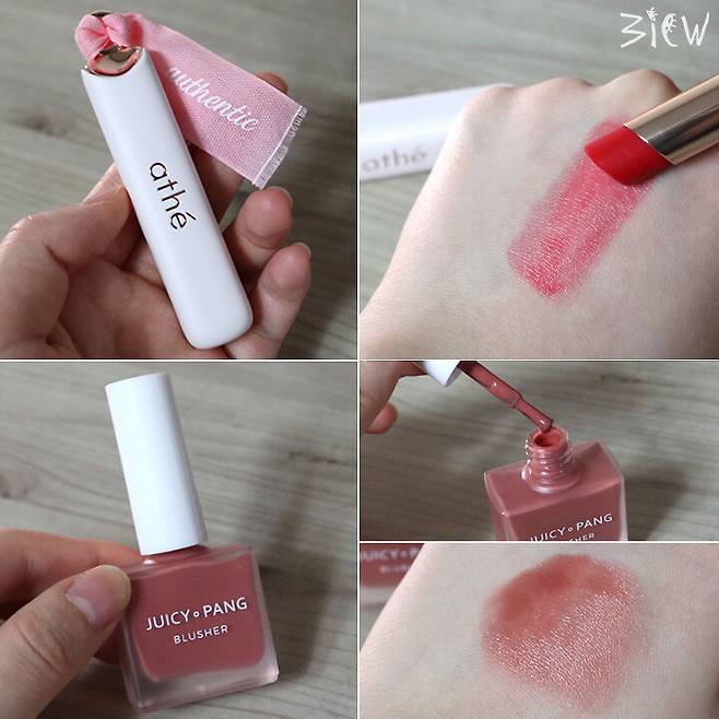 저는 블러셔의 경우 메이크업 할 때는 파우더 타입, 노메이크업 때는 워터타입을 사용하게 되더라구요~ 가볍게 톤업 베이스 정도만 발라줄 때, 립만으로는 생기가 부족해 보일때면 이 블러셔로 톡톡 생기를 얹어줘요~ 마치 매니큐어 같이 생겼지요~? 볼에 콕콕 찍어주고 손으로 톡톡톡 펴 바르면 된답니다. 굉장히 묽고 촉촉하게 발색되며 미세한 펄도 함유되어 있어 반짝반짝 윤이 도는 볼이 되더라고요! 컬러도 예쁘고 가격 대비 가성비가 너무 좋은 제품이에요~:)
