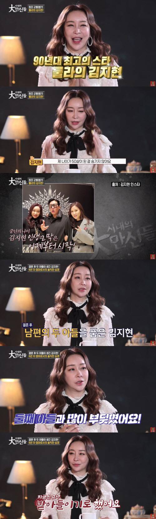 이날 만신들과 만난 김지현은 20대 전성기 시절부터 현재의 삶까지 솔직하게 털어놨다. 김지현은 "룰라 전성기 때는 너무 잘나가고 바빴지만, 정작 나는 행복하지 않았다. 연예인들이 많이 우울증도 걸리지 않냐. 나는 그걸 지나서 오히려 지금이 더 좋은 거 같다"며 "그때는 방송을 시키는 대로 해야 하니까 힘들고 우울했다. 무대에 있을 때만 행복했고, 무대에서 내려와서는 우울하고 공허했다. 근데 지금 이 나이가 되니까 그때 감정보다 지금이 더 행복한 거 같다. 나는 그래서 나이가 50세가 된 걸 숨기지 않는다. 지금이 나쁘지 않다고 생각한다"고 밝혔다.