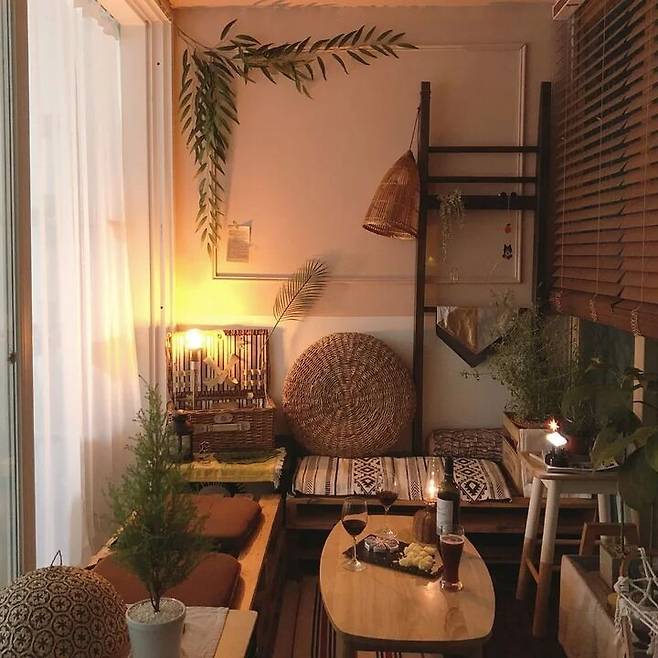 우리 집에는 조금 특별한 공간이 있어요. 결혼을 하면서 베란다에 남편과 함께 즐길 수 있는 공간을 마련했어요. 계절에 따라, 소품에 따라 꾸몄던 공간이 최근에는 휴양지 콘셉트로 자리 잡게 되었네요.