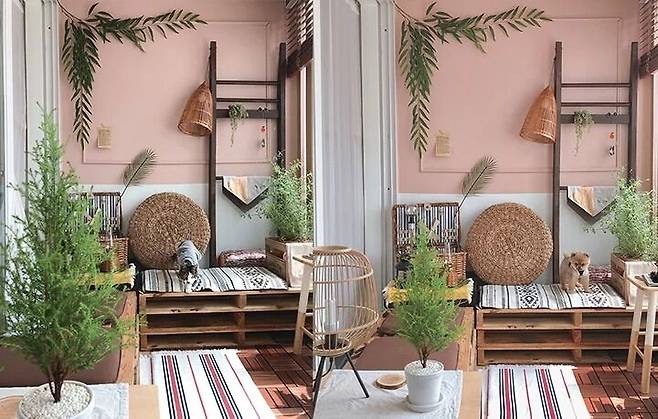 그렇게 변신한 베란다는 현재는 핑크색 벽에 라탄의 소품들과 어우러져 휴양지 느낌 나는 공간으로 재탄생했어요.