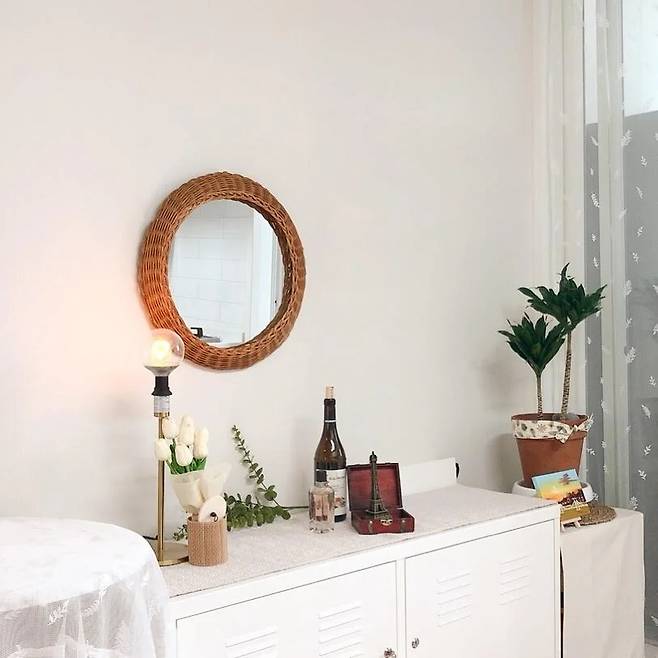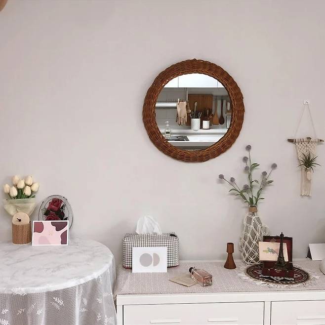 라탄 거울로 비치는 곳이 싱크대입니다 :)
