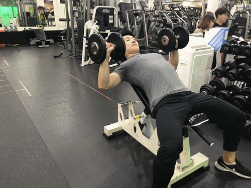 인클라인 덤벨프레스(4셋트, 가슴 위)