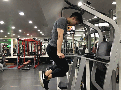 덤벨이 얼굴,배쪽으로 가지 않도록 주의