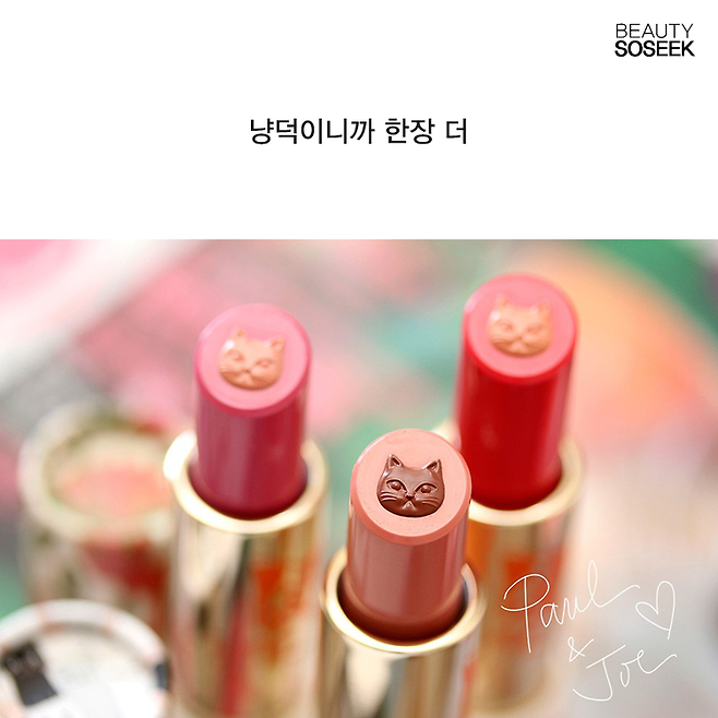 고양이 디자인이 많은 폴앤죠 뷰티는 고양이를 립스틱 한가운데에 뙇!