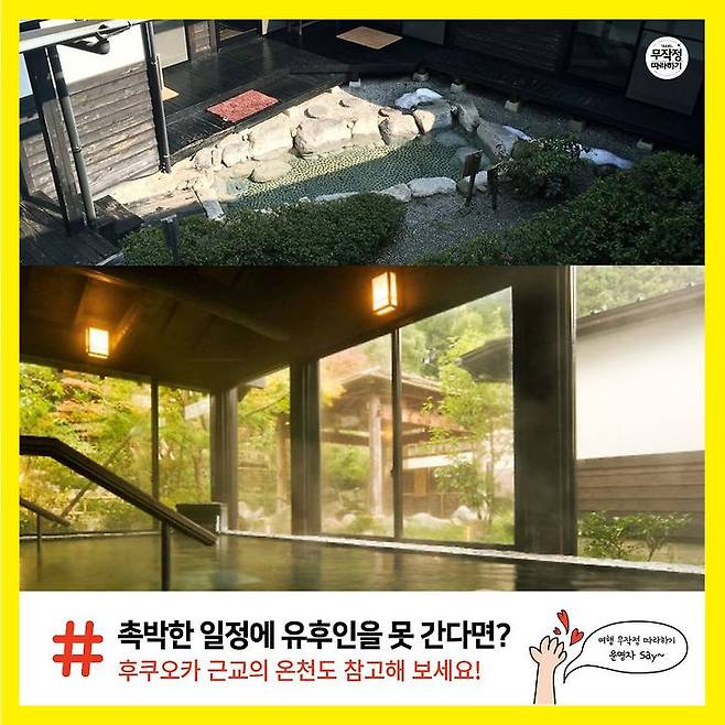 촉박한 일정에 유후인을 가지는 못하지만, 온천욕을 꼭 하고 싶다! 하는 분들은 후쿠오카 근교의 온천을 참고해 보세요.