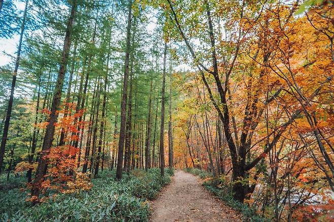 드라마와 영화 CF 등에 자주 등장하며 이미 유명해진 길이지만 가을에는 형형색색의 단풍이 더해져 그 아름다움이 배가되어 많은 관광객들이 찾는 곳 중 하나죠.