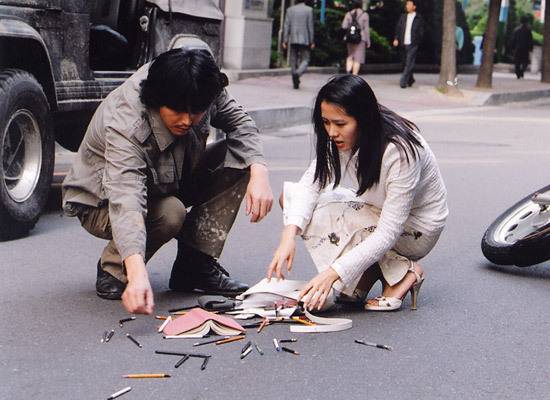 슬픔에 빠진 수진이 넋이 나간채로 편의점에서 음료를 사다가 철수(정우성)와 처음으로 마주친 장면. 이때 수진은 철수에게 강렬한 인상을 남긴다.