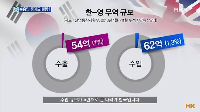 우리나라는 영국이 FTA를 맺은 국가 중 수입규모 4위에 해당한다고 합니다.
