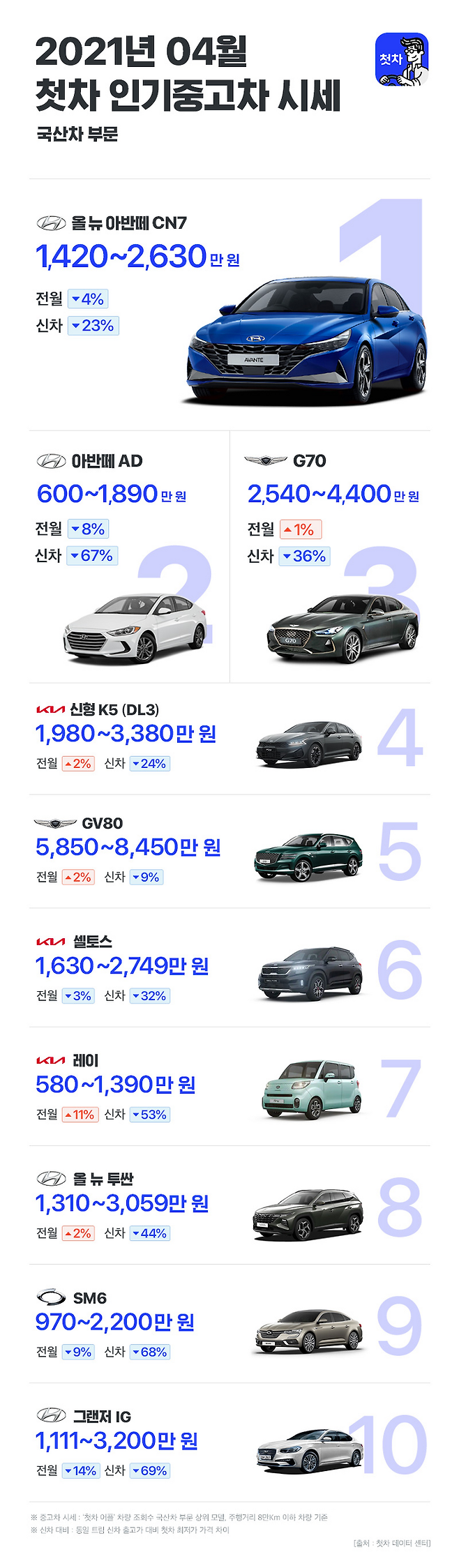 [시세보고서] 2021년 4월 인기 중고차 시세 정리!