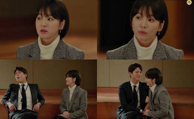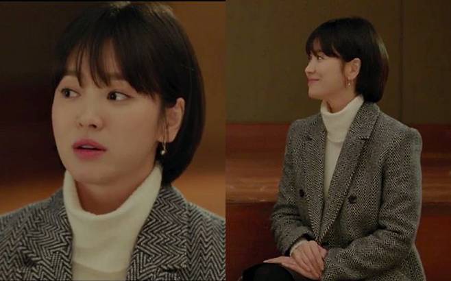 송혜교는 뱅 스타일 앞머리에 볼륨감 살린 짧은 숏 단발 헤어스타일로 동안 미모를 더욱 부각시켰고, 원피스, 코트, 재킷 등으로 여성스럽고 우아한 모던 오피스룩을 연출해 캐릭터를 더욱 입체감 있게 그려내고 있다.