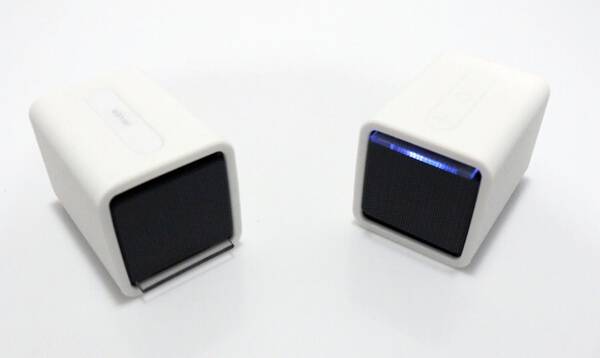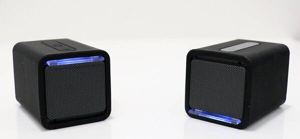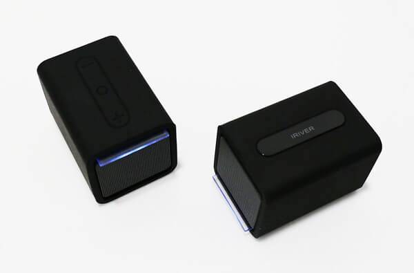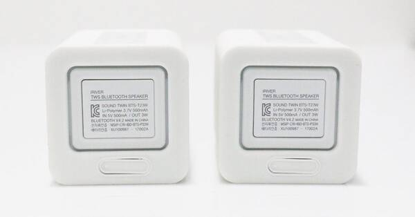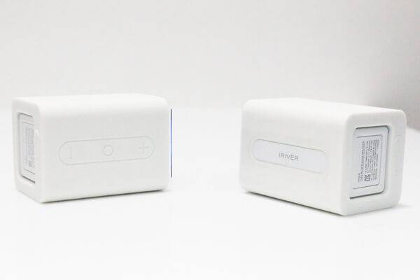사운드 트윈은 박스를 열자마자 아이리버만의 특유의 감성인 심플함이 그대로 전해진다. 불필요한 조작 버튼을 없앴고, 색상은 깔끔한 블랙과 화이트 두 가지로만 만날 수 있다. 스피커 본체는 실리콘으로 보호하고 있어 파손 염려도 크게 줄였다. 제품 상단에는 음량 조절(+, -), 음악 재생/정지 단 3개의 버튼만을 사용하고 있다. 다만 스피커를 실리콘 재질로 마감한 탓에 먼지가 잘 붙는 건 아쉽다. 특히 블랙의 경우 특성상 먼지가 너무 잘 보여 주기적으로 털어내지 않으면 오랜 시간 사용하지 않은 것처럼 금세 먼지가 쌓인다.