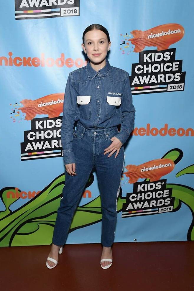 4. 니켈로디언의 2018 키즈 초이스 어워즈에서 밀리 바비 브라운은 '네버 어게인'이라는 문구와 함께 살해당한 사람들의 이름이 새겨진 캘빈 클라인의 청청 패션을 입고 플로리다 파크랜드 희생자를 기렸다.