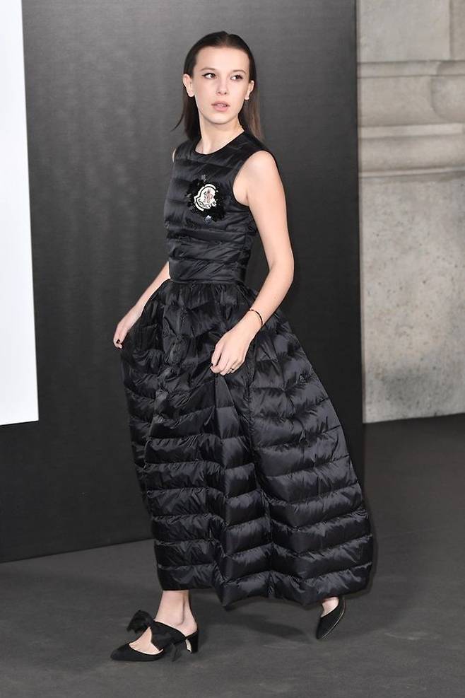 5. 밀라노패션위크의 몽클레어 지니어스 행사에서 밀리 바비 브라운은 '몽클레어 4'의 글램핑에 퍼퍼 드레스를 입었다.