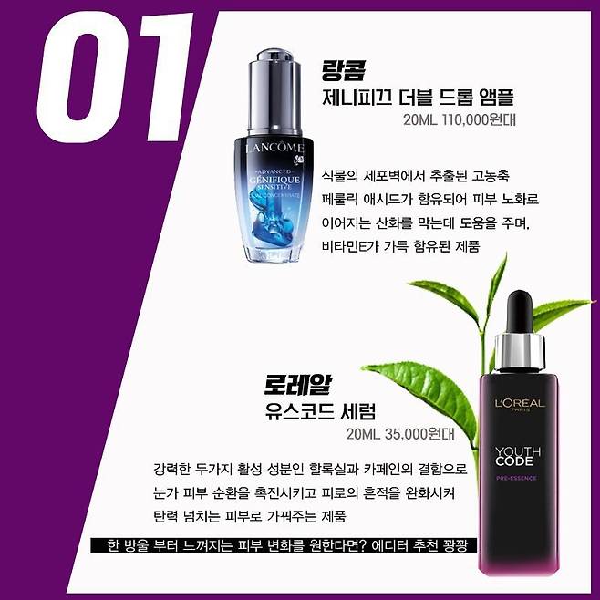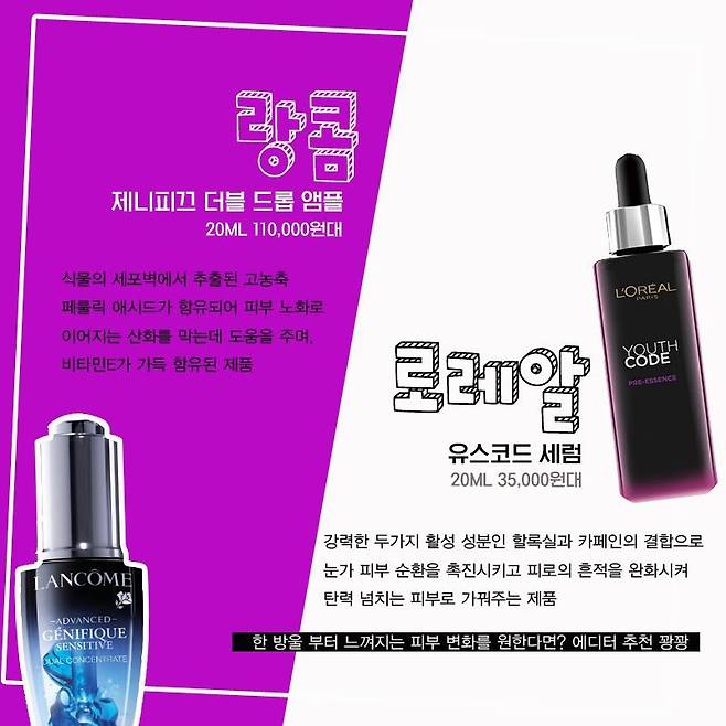 랑콤의 제니피끄 수지 앰풀로도