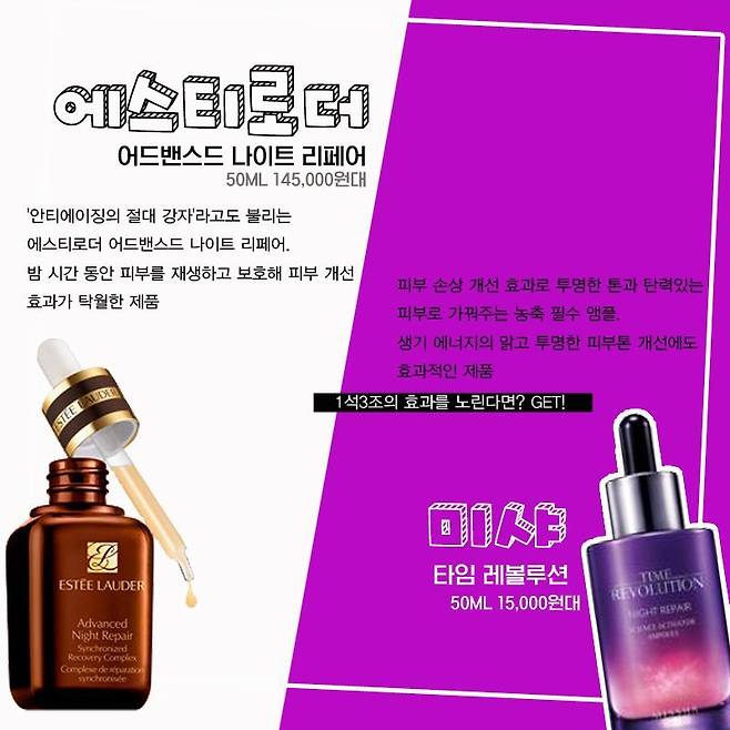 안티에이징 제품이 눈에 보이죠?!
