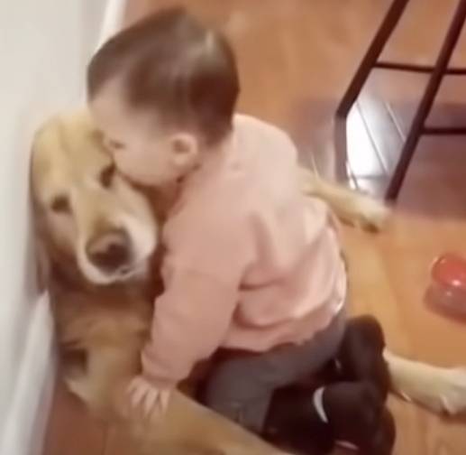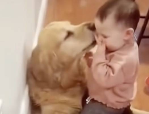 강아지는 그런 아기에게 고맙다고 인사하듯이 뽀뽀해주죠! ㅠㅠ