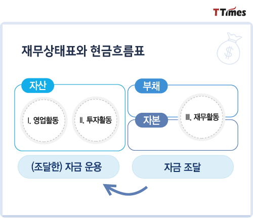 ③ 재무활동(자본 조달) : 차입과 상환, 유상증자 → 부채와 자본 : 차입금, 납입자본 증감