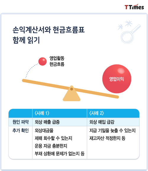 만약 두 항목의 차이가 크다면 이상하다고 여기는 것이 재무제표 함께 읽기의 시작이다. 더 나아가 그 차이가 왜 발생했는지 생각해보고, 차이 원인을 설명해줄 수 있는 근거 자료를 확인하는 것이 재무제표 함께 읽기의 궁극적인 목표다.