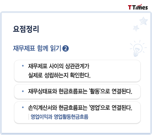 손익계산서의 ‘영업이익’과 현금흐름표의 ‘영업활동 현금흐름’은 영업활동과 관련하여 발생한 이익과 현금흐름이라는 측면에서 관계가 깊다. 비록 외상 매출이나 외상 매입과 같이 현금흐름과 관련 없는 활동이 있어 두 항목의 수치가 완전히 일치하지는 않지만, 정상적인 상황이라면 두 항목의 수치나 추세는 비슷해야 한다. 이것이 손익계산서와 현금흐름표 사이의 상관관계다.