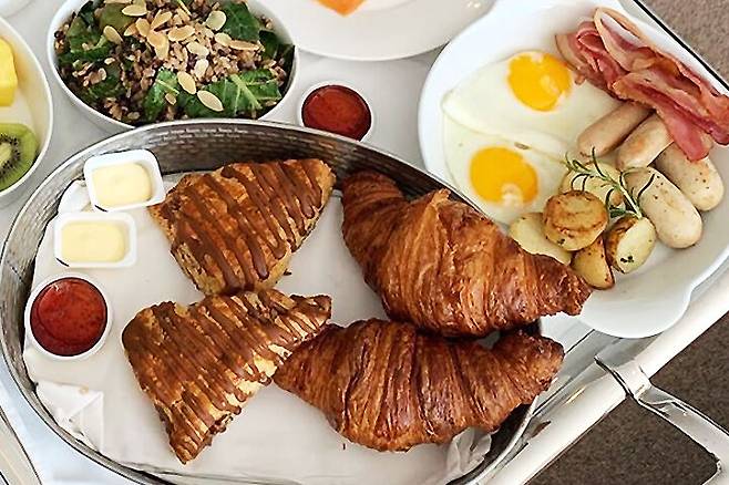 이곳은 특히나 직원분들이 정말 친절해서 기분 좋게 식사하실 수 있어요. 또 즉석에서 오믈렛과 계란 프라이를 제공해주는 코너가 있는데 따끈한 계란을 받아서 다른 빵과 함께 먹으면 꿀맛! 프렌치토스트, 와플 등 빵 종류도 다양하고요. 버터도 다양하게 구비되어 있어서 취향대로 즐기실 수 있어요. 특히나 크루아상은 오븐에서 막 구워 나오기 때문에 그냥 지나칠 수가 없답니다.
