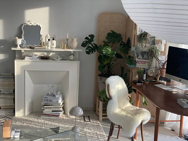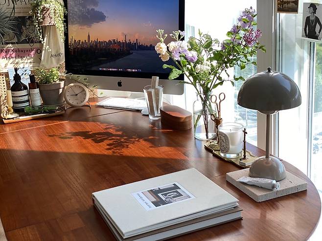 샵에 있는 아이맥은 보면 인테리어상으로도 무척 예쁘더라고요. 그래서 사무용 책상 느낌이 아닌, 예쁜 소품들을 더해서 샵 같은 느낌이 들게 하고 싶었어요.