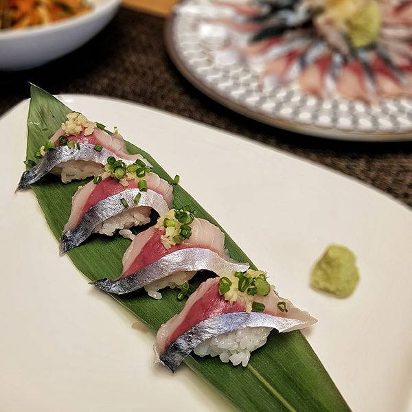 #8. 고등어 초밥 : 초대리한 밥 한 숫갈에 고등어회 한 점 올리면 근사한 고등어 초밥 완성.