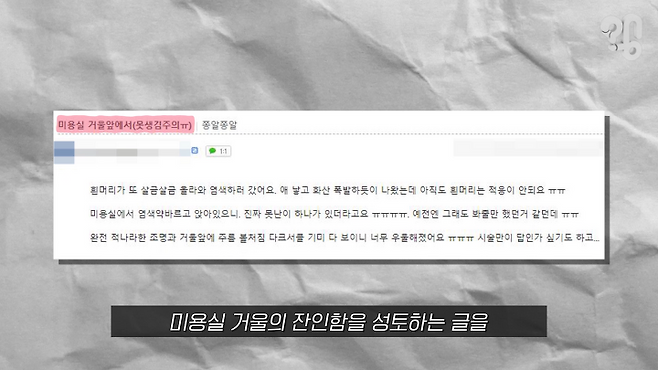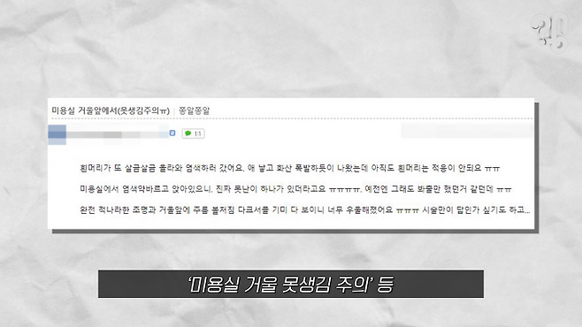 유튜브 댓글로 ‘왜 미용실 거울은 못생겨 보이는지 취재해 달라’는 의뢰가 들어와서 알아봤다.