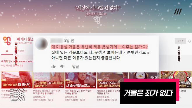 유튜브 댓글로 ‘왜 미용실 거울은 못생겨 보이는지 취재해 달라’는 의뢰가 들어와서 알아봤다.