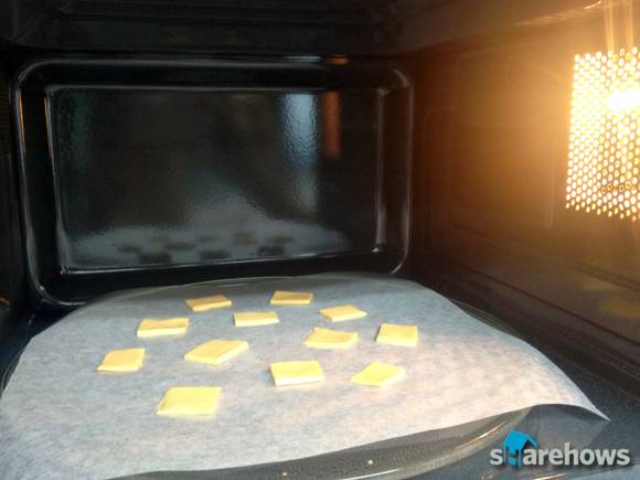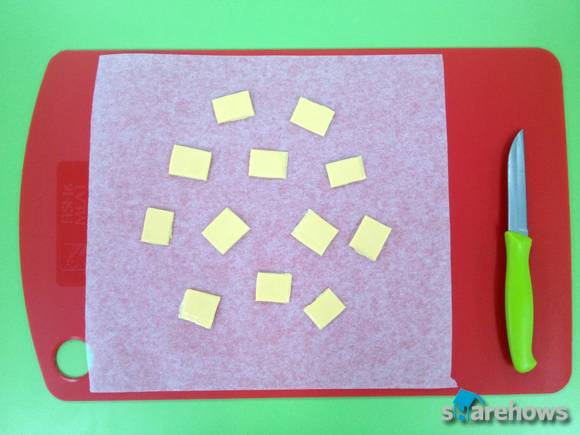 스텝 2. 치즈를 먹기 좋은 크기로 잘라 종이 호일 위에 올린다.
