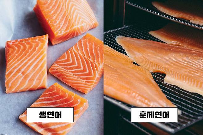 훈제 연어는 훈연법을 사용해 보존처리한 연어인데요. 인류의 가장 오래된 식품 저장법 중 하나로 인정되는 훈연법은 습기가 많고 기온이 낮은 북유럽에서 발달한 방법이에요. 연어 자체에 훈제 향이 베어 있어 샌드위치나 샐러드 등 가벼운 요리로 만들어 먹기 좋아요. 고추냉이처럼 맛이 강한 소스보다는 마요네즈, 크림치즈와 궁합이 잘 맞아요.