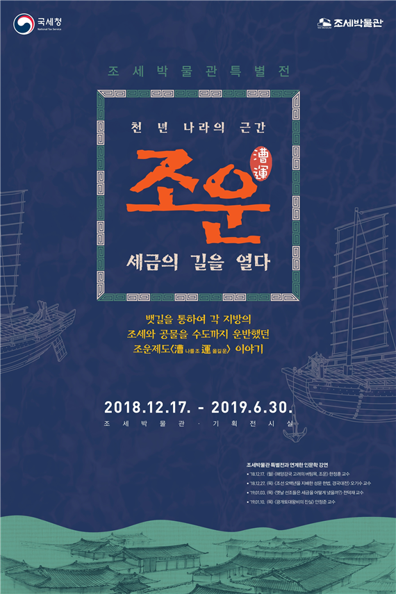 조세박물관은 12월 17일부터 <조운, 세금의 길을 열다> 특별전을 개최하고 있어요. 지방의 조세를 수도로 운송하여 고려와 조선의 국가재정 확보에 중요한 역할을 담당했던 조운 제도를 살펴보는 전시인데요. 역사 속 세금을 옛 문헌과 유물, 체험코너를 통해 생생하게 배울 기회가 될 수 있답니다.