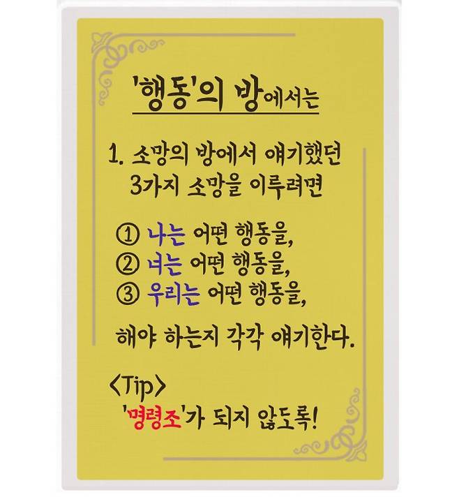 방마다 정해져 있는 ‘말하기’ 규칙을 지킨다.