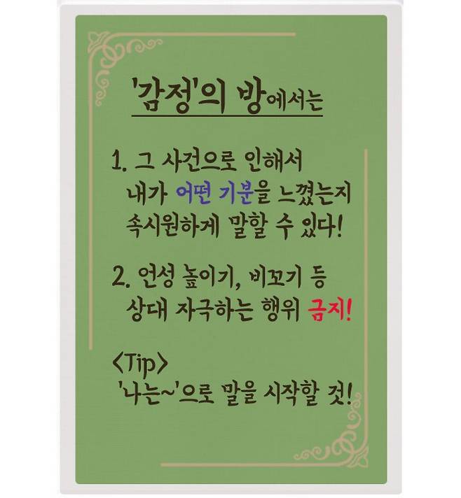 대화를 하다 보면 자꾸 감정이 앞서기 때문이죠.