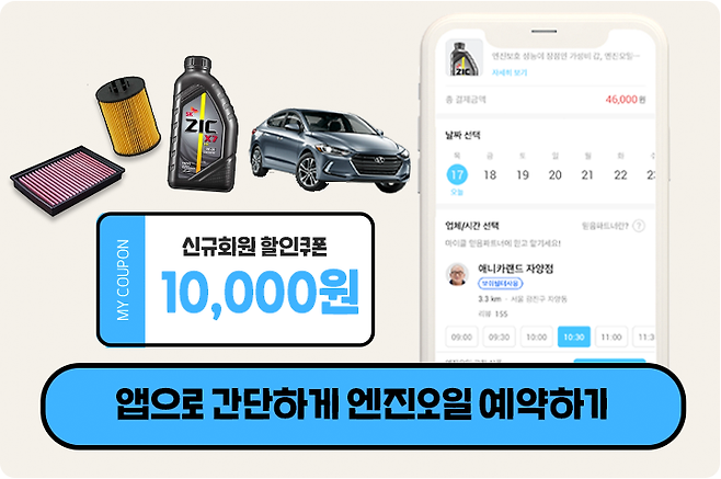 첫구매 고객은 1만원 할인쿠폰도 제공하고 있으니 이번 기회에 엔진오일을 교환해 보시는 건 어떠세요?