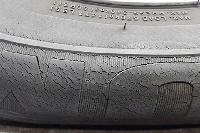 타이어 마모를 확인하는 방법은 생각보다 쉽습니다. 내 차 타이어 옆면에 돌출된 삼각형 표시를 찾아보면 트레드 홈 사이의 마모한계선 이라는 것을 확인할 수 있는데요.