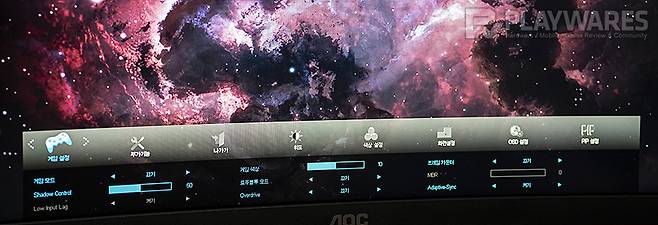 - 장르별 모드 최적화를 지원하는 게임모드 및 HDR모드, 부가적으론 채도 조절이 가능한 게임컬러 지원