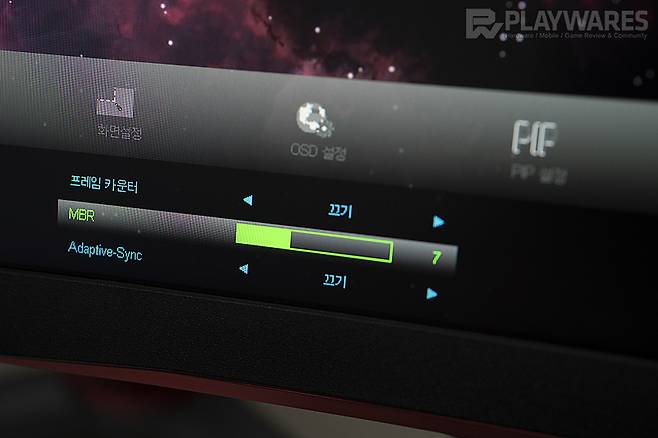 - 잔상이 적어보이게 만드는 MBR(Motion Blur Reduction) 기능 지원, 보다 선명하고 잔상이 적은 화면에서의 게이밍