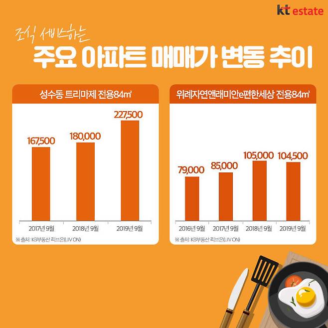 조식서비스가 인기를 끌면서 이들 아파트에 대한 인기도 덩달아 높아지고 있습니다. KB부동산 리브온(Liiv ON)에 따르면, 트리마제 전용 84㎡A타입의 경우 2017년 9월경 평균 매매가가 16억7500만원이었지만 2년이 지난 현재 22억7500만원으로 무려 6억 이상 올랐습니다. 위례신도시에 있는 자연앤래미안e편한세상은 2016년 입주직후 전용 84㎡의 평균 매매가는 7억9000만원 이었지만 3년이 지난 현재 9월) 10억이 훌쩍 넘는 10억4500만원의 시세를 형성하고 있습니다.