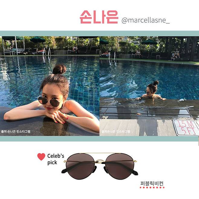 다음은 #손나이쁜 손나은! 손나은의 썸머 잇 아이템은 선글라스~ 올 여름에 유행하는 선글라스 디자인이 보잉 스타일이라지!? 그녀가 착용한 투브릿지 보잉 스타일의 선글라스 넘나 갖고 싶은 것..♡