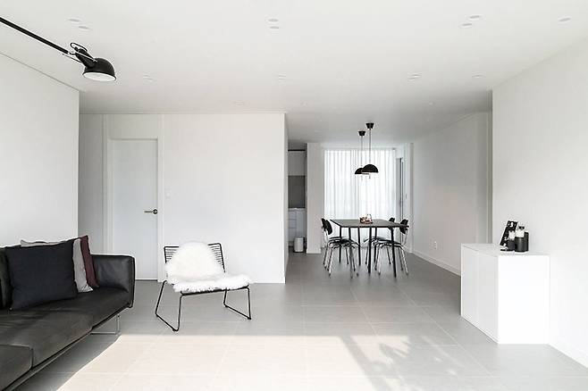 저 역시 인테리어를 한다면 기피해야 할 1순위를 '유행을 타는 것'인데, 이런 모든 것을 고려하다 보니 결국 시작은 '바탕을 잘 만들어 보자'가 되었고 집 안 곳곳의 선과 면 정리에 많은 공을 들여, 화이트와 블랙을 기본으로 하고 소재의 재질과 컬러의 통일감에도 중심을 두게 되었어요.