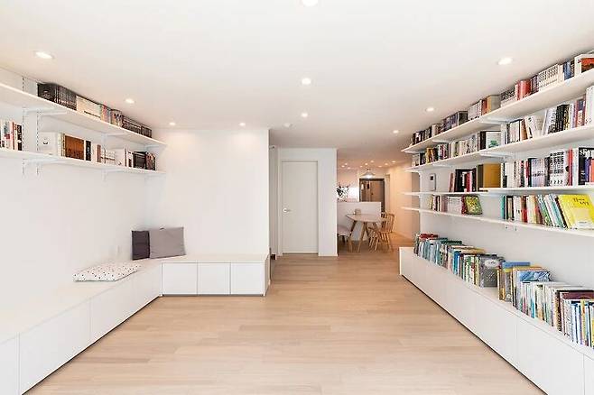 3. 거실의 공간 - 홈라이브러리(책장형 수납, 벤치형 수납 및 붙박이장 제작)