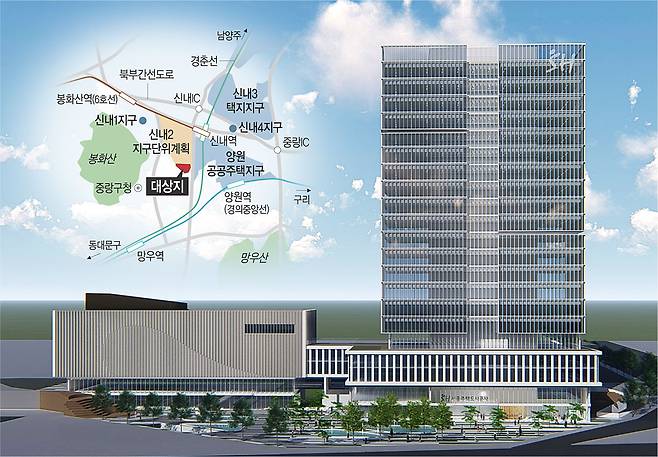 중랑구가 경제도시로의 도약을 위해 2024년 준공을 목표로 SH 본사(조감도) 신내동 이전 작업에 박차를 가하고 있다. 구는 이번 사업을 완수하면 서울 강남·북 불균형 해소와 지역 자족 기능 강화, 문화시설 확충 등 다수 성과를 달성할 수 있을 것으로 기대하고 있다.