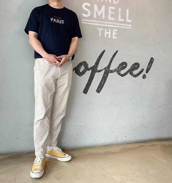 남자분들은 유행하는 치노 팬츠나 코튼 팬츠와 매치해주면 꾸안꾸 스타일 완성이에요 -