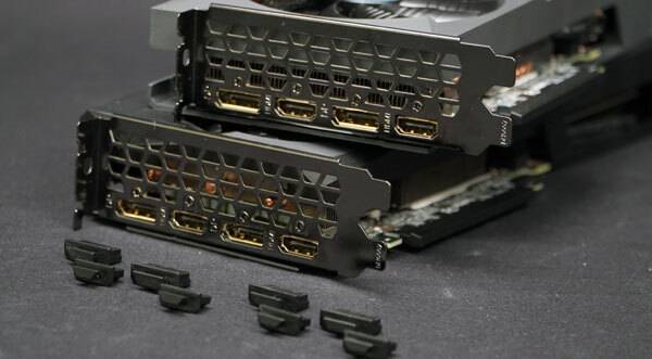 기가바이트 지포스 RTX 3060 Ti 게이밍 OC와 RTX 3060 Ti 이글 OC의 특이점을 꼽으라면 출력 포트 구성을 들 수 있다. 세 개의 DP 포트와 1개의 HDMI 포트 구성인 레퍼런스와 달리, 기가바이트 지포스 RTX 3060 Ti 2종은 DP 포트를 2개로 줄이고 HDMI 포트를 2개로 늘렸다.
