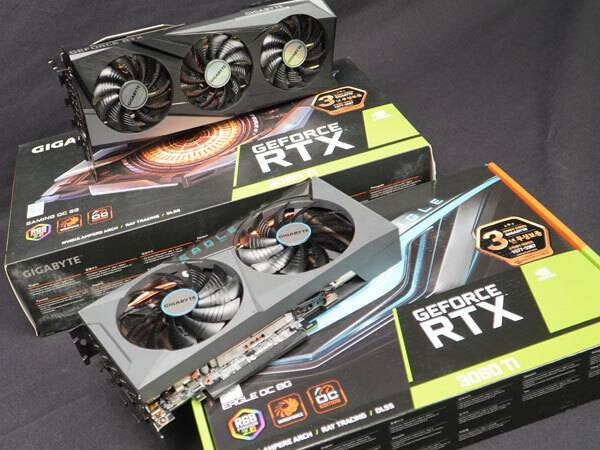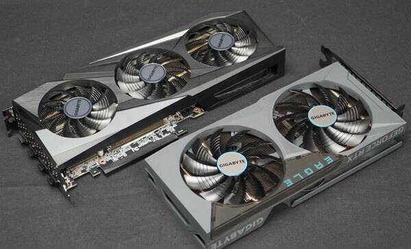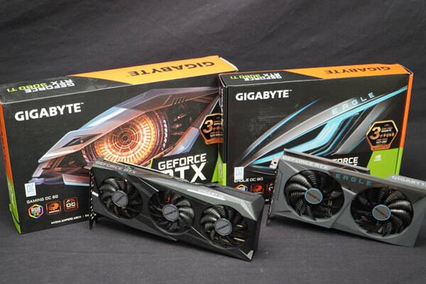 기가바이트 지포스 RTX 3060 Ti 이글 OC과 지포스 RTX 3060 Ti 게이밍 OC 제이씨현 그래픽 카드 중 전자는 가성비에 조금 더 신경 쓰는 게이머를 위한 모델이며, 후자는 성능을 추구하는 게이머 대상 제품이다.