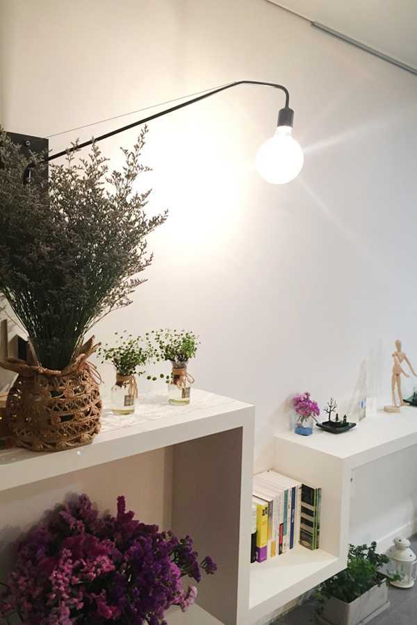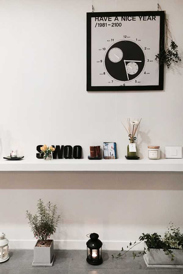 선반을 설치해 조화와 소품들로 꾸몄어요.
