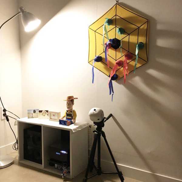 벽에 설치한 조명에는 줄을 연결해