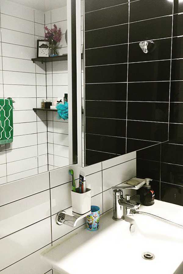 거울이 달린 수납장을 설치했어요.