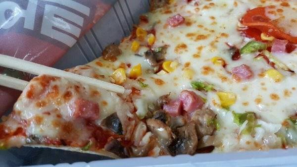 편의점 CU의 자이언트피자는 피자집이 문을 닫은 야심한 시간에 사 먹기 매우 좋다. 전자레인지에 1분만 데우면 갓 구워낸 듯한 따끈따끈하고 큼지막한 피자 한 조각을 먹을 수 있다. 2,400원이라는 착한 가격은 부담을 주지 않지만, 칼로리는 535kcal이기 때문에 매일 밤마다 즐겨 먹게되면 살이 찔 수 있으니 너무 늦은 밤 보다 낮에 먹는 것이 좋겠다.