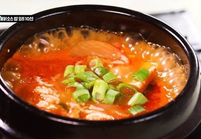 불닭소스, 양파, 감자, 대파, 두부, 돼지목살, 사골육수, 다진 마늘